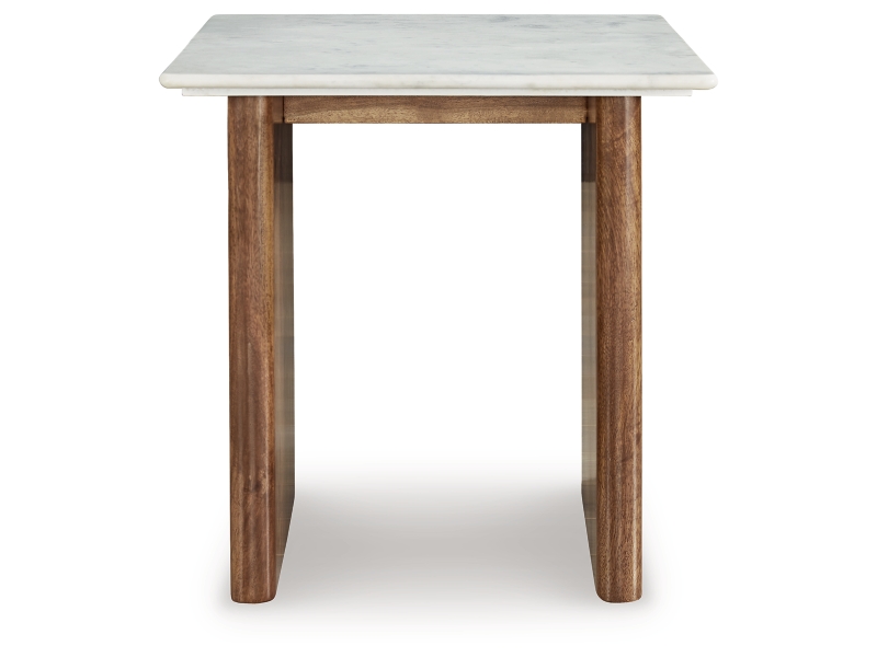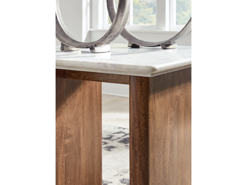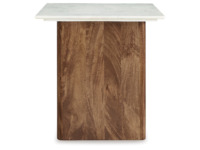 With its back-to-nature sensibility, this end table is a natural fit for outfitting your modern living area. Its clean-lined design lets the beautifully organic quality of the mango wood shine through, complemented by the sleek refinement of a marble top. This table is the ideal spot for decor, snacks and beverages.