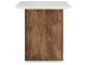 Natural Contemporary design. Made with solid Mango wood base and natural marble top. Natural light brown finish and white marble.