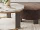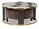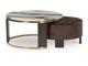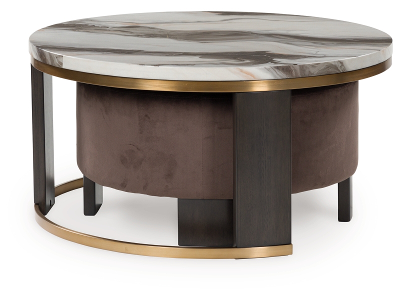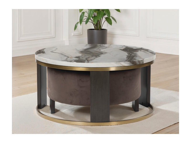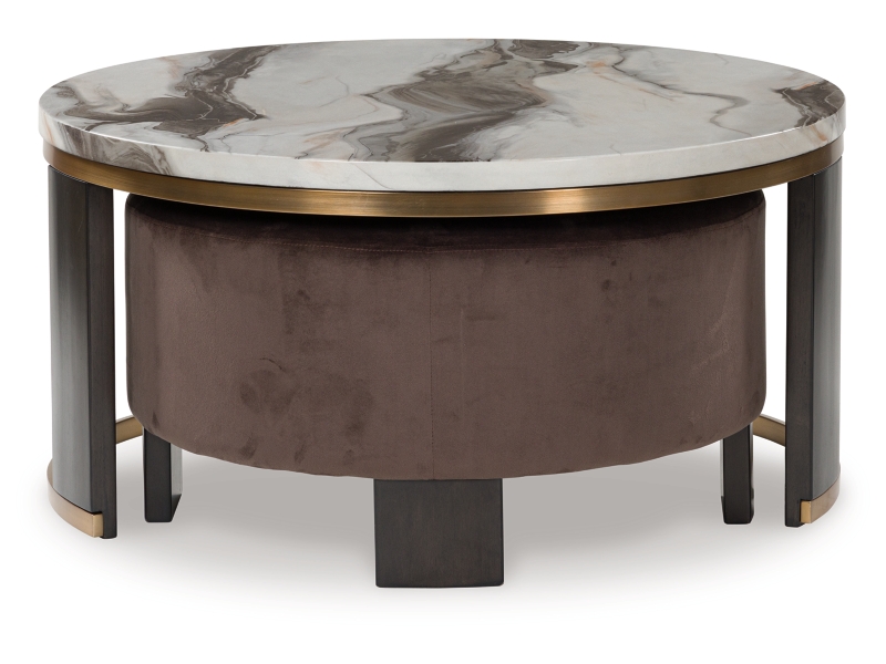 Ultra-contemporary design, everyday convenience. This trend-forward nesting coffee table completes your confidently curated living room with its marble-patterned top and eye-catching brass-tone frame. Dark wood grain on the legs provides a beautiful contrast. Paired with a nesting ottoman in chocolate brown velvet upholstery, this piece serves up must-have function in sophisticated style.