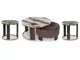 Contemporary design. Made with antique brass finished metal frames and decorative paper laminates on MDF substrate. Legs are wrapped in a replicated dark walnut wood grain laminate. The cocktail table features a nesting upholstered ottoman covered in a chocolate brown velvet.