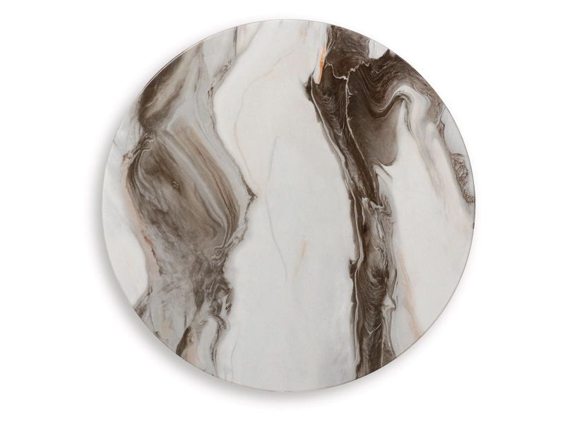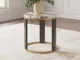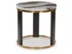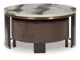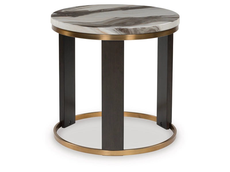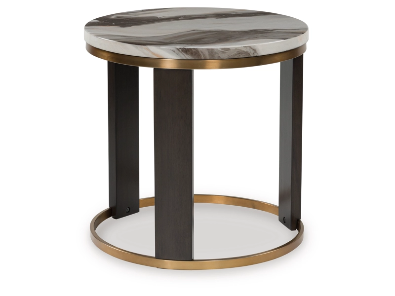 Ultra-contemporary design, everyday convenience. This trend-forward occasional table package completes your confidently curated living room with its pairing of marble-patterned tops and eye-catching brass-tone frames. Dark wood grain on the legs provides a beautiful contrast. It's well-suited for supporting a sofa-side lamp, holding drinks or displaying decor in sophisticated style.