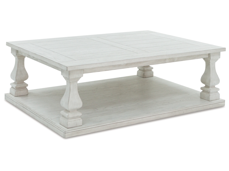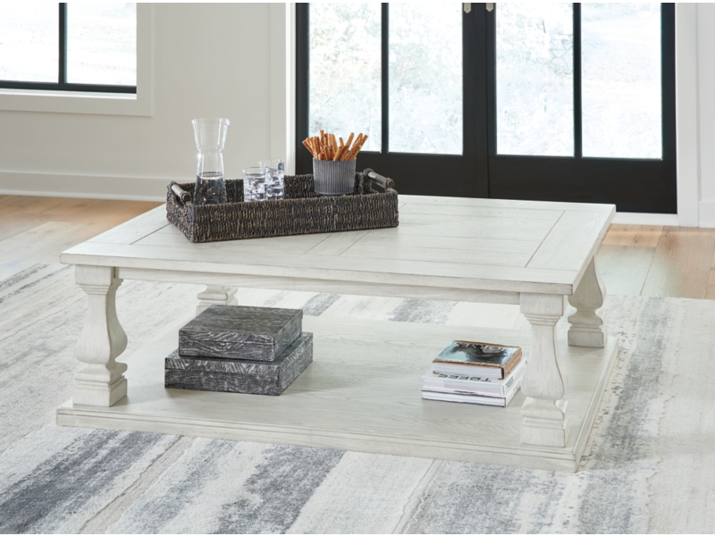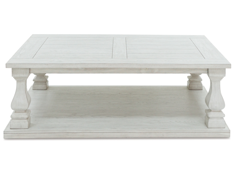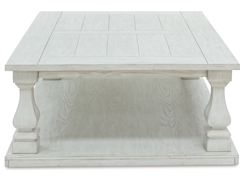 Elevating the art of casual traditional styling, this coffee table is your heavenly home accent realized. Oversized and indulgent, this beautiful piece wows with a wide plank design and square-shaped baluster legs, leaving you absorbed in its charisma. 2 Matching end tables included.