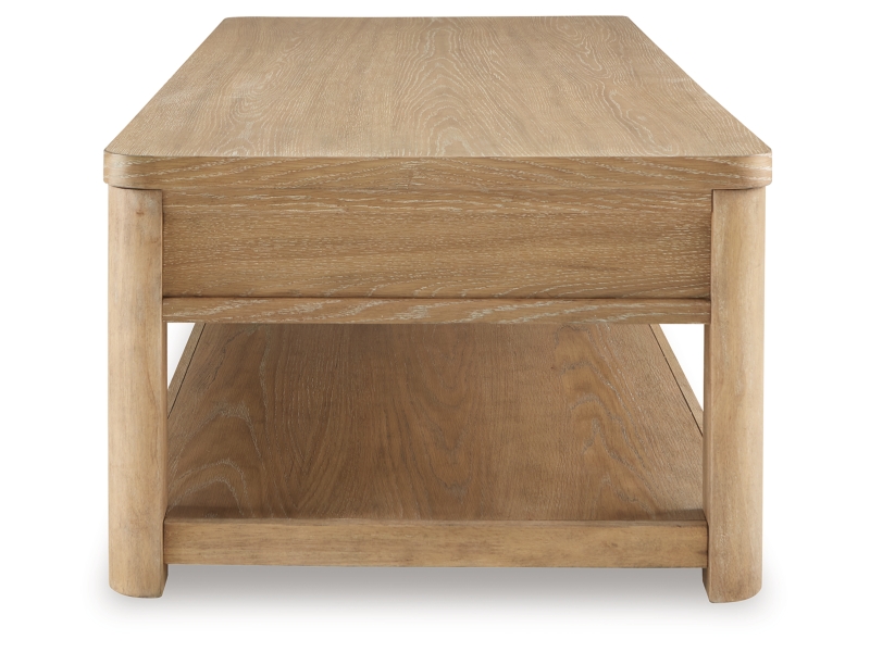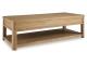 This coffee table's classic yet contemporary good looks are hard to deny. Softly shaped posts with a light oak finish and wire-brushed wood grain texture lend an organic appeal to your soothing space. Roomy drawers cater to additional storage needs while keeping clutter at bay. Plus there's plenty of display space on the lower shelf for, ahem, coffee table books.