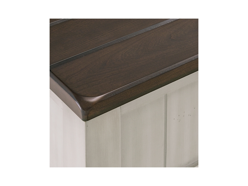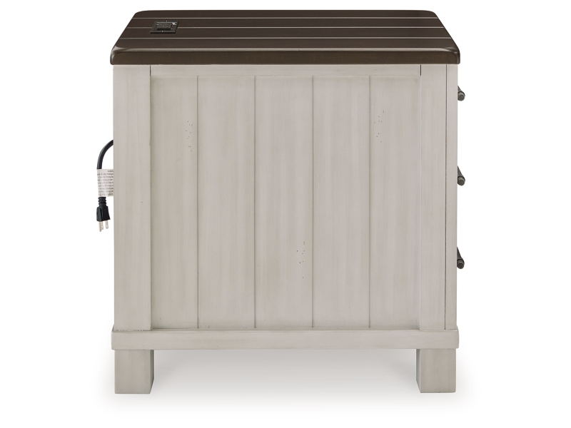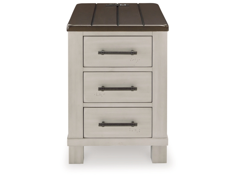 Casual Lifestyle Design. Made with solid Acacia wood , Cherry veneer, and MDF substrate. Stylish two-tone finish featuring glazed light gray paint with clean brown cherry stained tops. Small handmade distressing marks such as rounded off corners and brushed finish effect while the top features a thick planked look. Each table has convenient drawer storage with fully finished interiors, metal ball-bearing side glides and metal pulls with an aged iron finish. T796-00 cocktail table features a lift-top section for added work or dining surface at your sofa, and casters for easy mobility. T796-7 end table has three drawers and in integrated 110V power supply with dual USB charging ports to keep all your devices powered up.