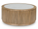 Casual contemporary design with a modern vibe. Made with hardwood solids, decorative melamine laminate and MDF substrate. A light glazed wood tone enhances the beautiful wood grain character. Table tops have faux white marble with gray veins. The T808-8 round cocktail table has casters for easy mobility.