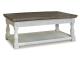 With its richly rustic finish and textural mix, this lift-top coffee table goes to town on bygone beauty. Its distressed two-tone treatment blends a weathered gray with vintage white for an utterly charming effect. The lift-top design adds function to your very comfortable space. 2 matching end tables also included.