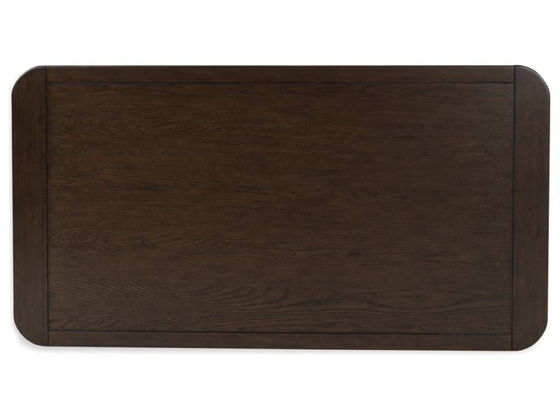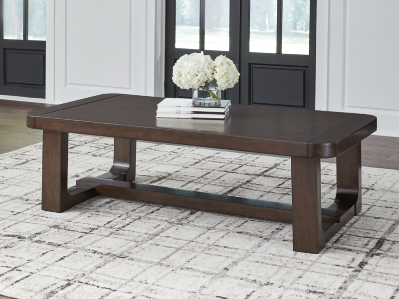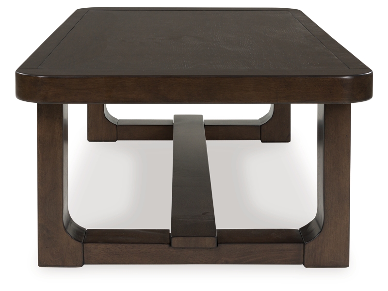 If casual contemporary style is your thing, then you'll love this coffee table. Its thick solid wood edge, softly rounded corners and dark wood-tone finish lend a soothing sensibility. Sleek and stylish, this piece is a fresh take on cool for the modern home.