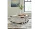 Rustic Farmhouse design. Made with pine solids and veneers with engineered wood substrate. Distressed whitewashed finish. Stylish cross-buck details and metal bracket appliques. Dual lids on the cocktail table are designed for easy access to the large capacity storage area.