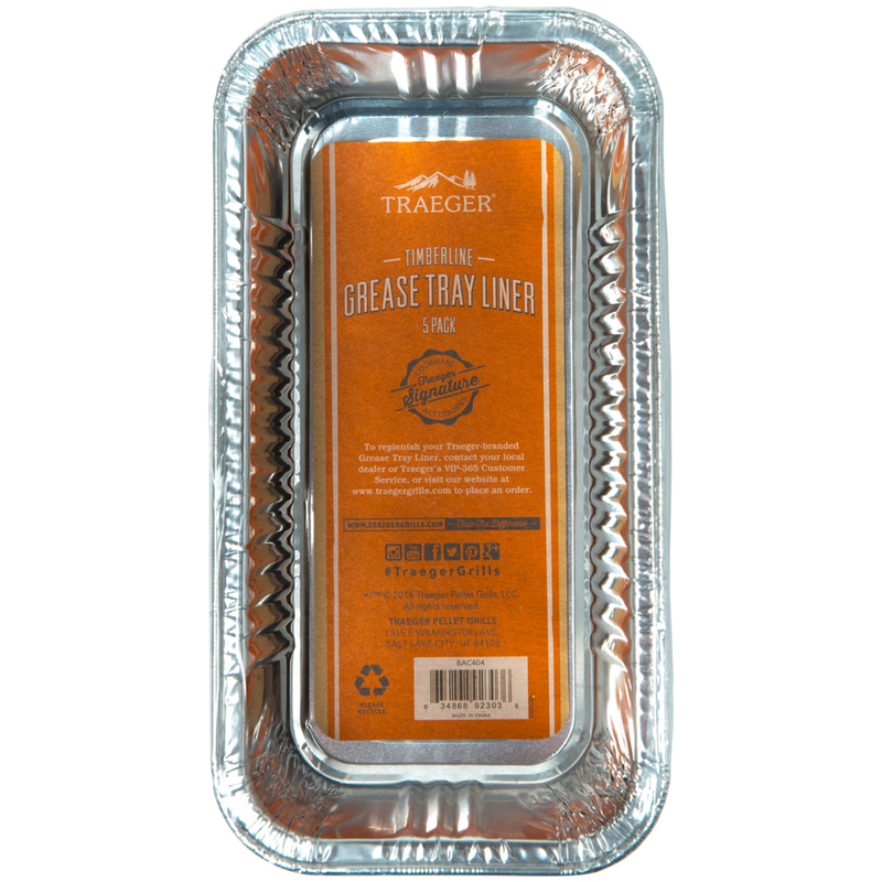 Spend more time grilling and less time cleaning with our Timberline Grease Pan Liners. These aluminum foil liners are disposable so just ditch your used one, set a new one in the grease trap, and Traeger on. Fits Timberline 850 and 1300 (Gen 1 and 2 models)