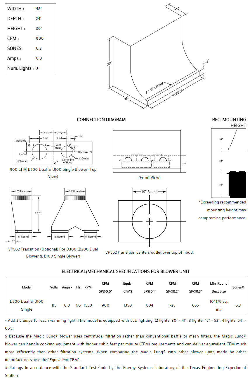 48" Vent-A-Hood Premier Magic Lung Professional Or Standard Wall Mounted Hood - DAH30348SS