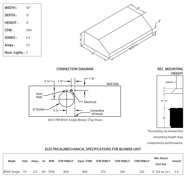 Rounded front lip provides a modern visual impact. Includes the Magic Lung® blower system. Lights feature a dual switch for dimming. Equipped with the SensaSource® heat sensor. Available in popular standard or custom paint colors, stainless steel, real brass, real copper or hammered copper. Recommend mounting height is from 24" - 27" above the cooking surface. Suitable for use in covered outdoor applications when installed in a GFCI protected branch circuit. Also available in custom sizes.