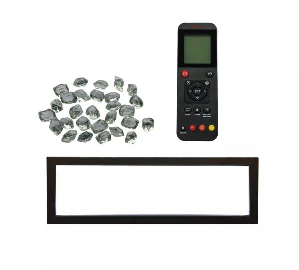 Clear glass diamonds, black powder-coated surround, and a full feature remote control