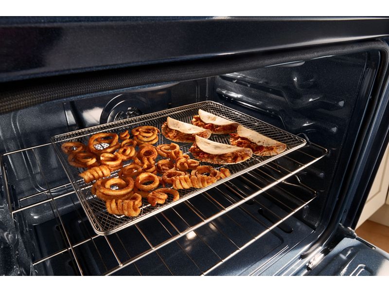 Go from gooey to golden and get even results when baking on multiple racks with Air Baking. Our high-speed fan optimizes air flow and drives consitent heat throughout the oven. Get golden results on breads, pastries and more.