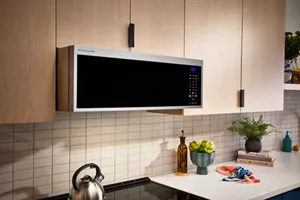 Provides a small, sleek microwave with finishing that blends into cabinetry and strong features that are powerful enough to replace hoods.